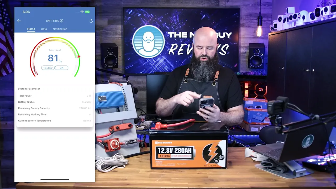 One of the features I really like about this Eco-Worthy pack is the built-in Battery Management System (BMS) with Bluetooth. In the early days of DIY Li-ion packs you had to assemble cells and add external BMS modules, manage balancing manually, and that always added complexity and risk. This Eco-Worthy unit has an internal BMS that takes care of: